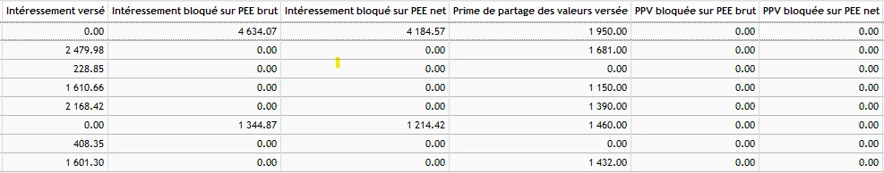 - intéressement reçu,