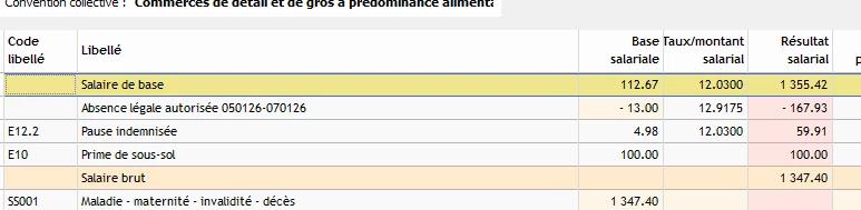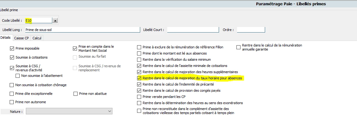 Comment peut-on intégrer certains libellés (E10, B15, etc.) dans le calcul du taux horaire de base servant au calcul des absences ?