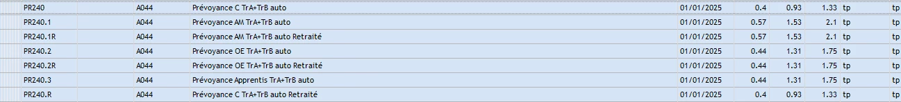 Il semblerait que les taux de cotisations conventionnels RPO cadre, agent de maîtrise et non cadre ne soient pas à jour.