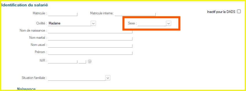 Depuis quelques temps, nous avons une nouvelle cellule dans la fiche salarié, intitulé : “sexe”