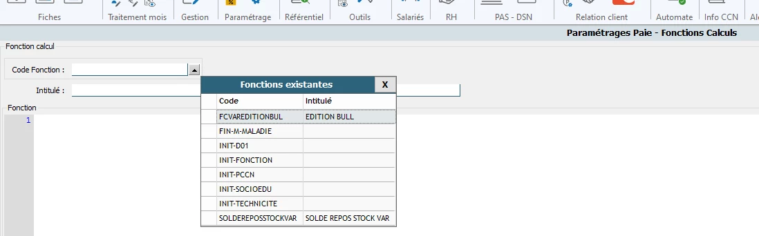 Nous avons sur un dossier, une fonction calcul qui avait été paramétré. Le client souhaitant changer les modalités, je souhaite la modifier. Cependant en me rendant dans Paramétrage puis Fonctions calcul, rien n’apparait…