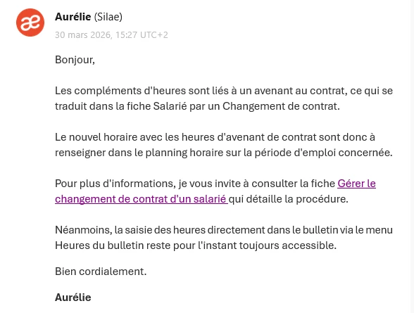 Dans la MAJ du 30/12/2025, il est indiqué que les HAC ne doivent plus être saisies dans les “Heures” mais dans l’horaire de la fiche ”salarié”.
