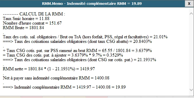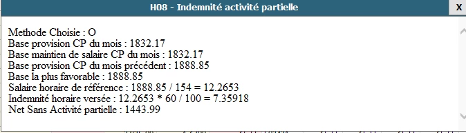 Au regard des informations indiquées dans les bulles , le salarié perçoit 60% de la base provision de CP M-1 comme indemnité et je comprends que ce dernier perçoit moins de 9.4 € du fait de la CSG sur la part patronale de mutuelle. Au total, indemnisation AP + Complément RMM, l'indemnisation revient à 8.30 €/hr