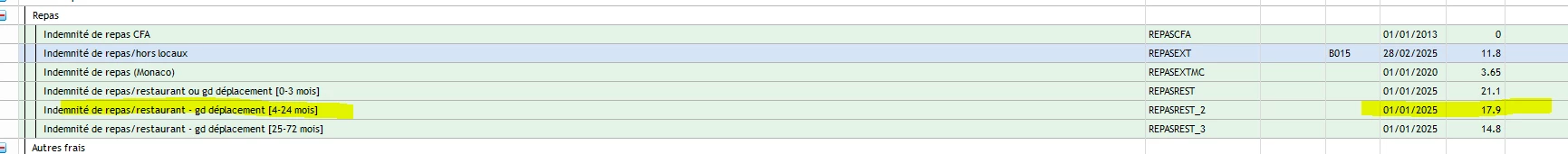 Comme faire pour le tarif des indemnités repas de grand déplacements passent de 21.10€ à 17.90€ une fois que le délai des 3 mois est dépassé.