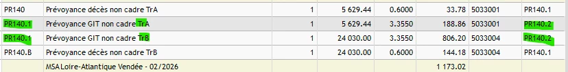 Comment intégrer ces deux cotisations PR140.1 dans ma FPOC ? Car les tranches A et B sont identiques :