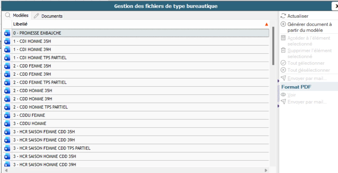 Je constate que les CDI FEMMES 35 et 39H ont disparu de la Bureautique sur mes dossiers.