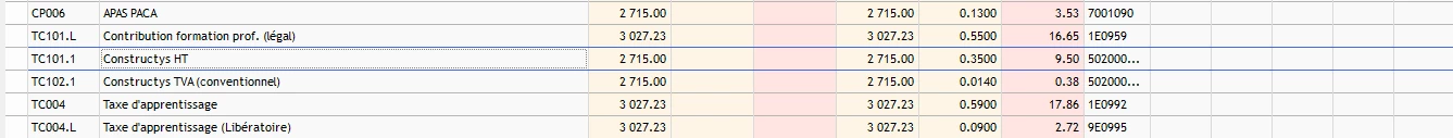 Par contre je n’arrive pas à modifier le taux des deux libellés TC101.1 et TC102.1.