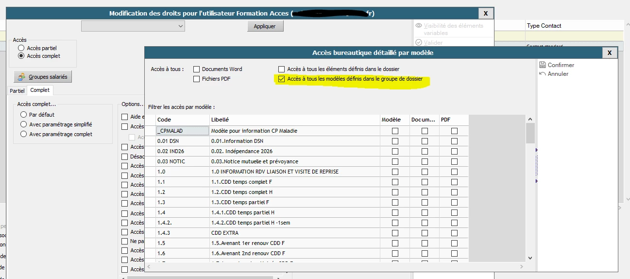 existe-t-il un menu qui permet de sortir la liste des modèles bureautiques créés sur les dossiers, sans avoir besoin de rentrer sur chaque dossier.