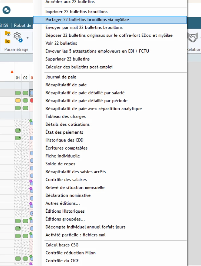 J’ai envoyé 22 bulletins en brouillon à mon client
