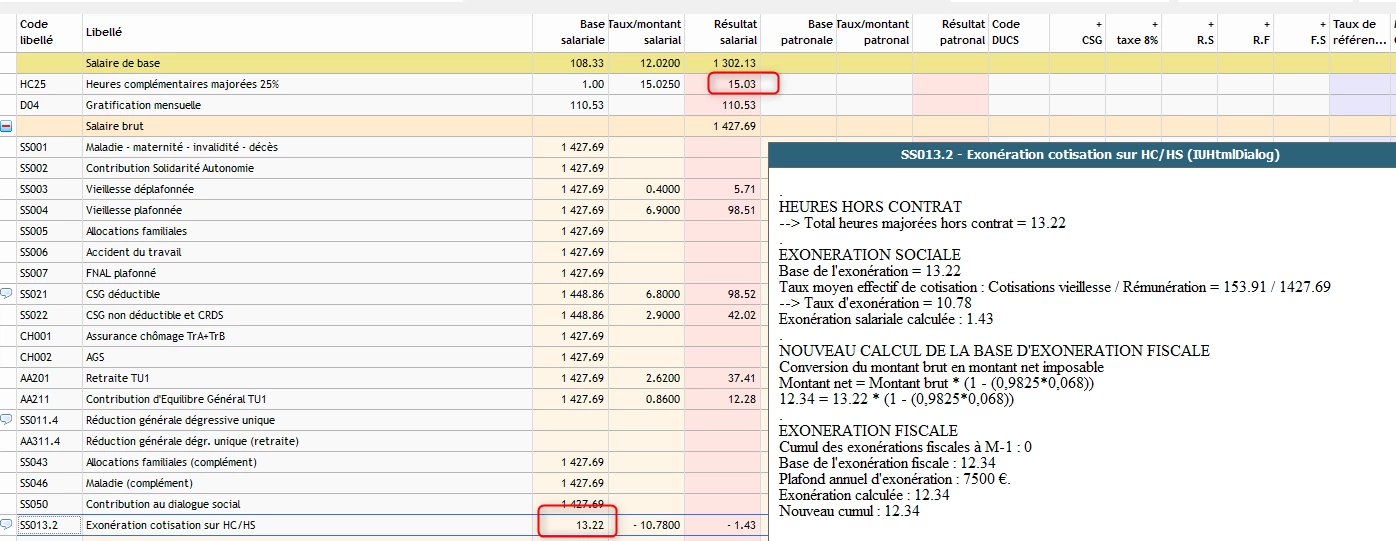 Si on paie 1 HC à 25% au lieu de 10%, l’exonération URSSAF ne peut porter que sur la majoration de 10%.