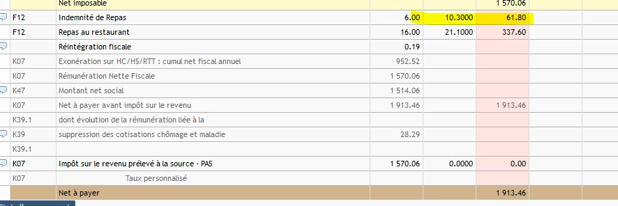 Je souhaite mettre en place pour une salariée le versement d’indemnités de restauration sur lieu de travail d’un montant de 10.20 euros sur chaque jour travaillé (donc 7.40 euros qui seront non soumis, montant urssaf, et le reste remontant en haut de bulletin). Savez-vous comment faire ?