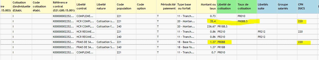 Avez-vous essayé de mettre le PR088.S en libellé de cotisations ?