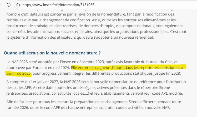 Concernant la mise en application de la NAF 2025 vous en savez plus?