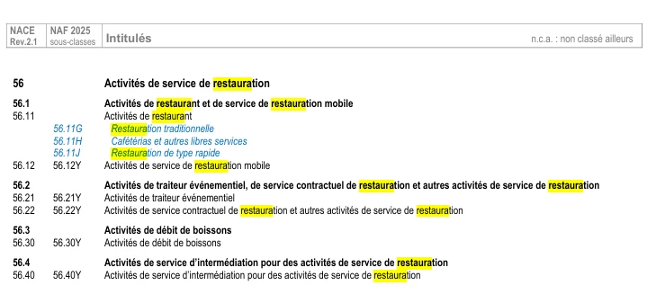 J’ai des client en HCR donc NAF 5610A Restauration traditionnelle mais normalement cette nomenclature devrait passer à 56.11G dans la liste déroulante SILAE j’ai les anciens codes, il me semblait que le changement devait avoir lieux en 2026… ça a changé?
