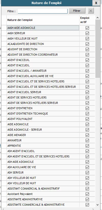 J’aimerai mettre à jour la liste des natures emploi qui ont été crée au fil des années, comment faire?