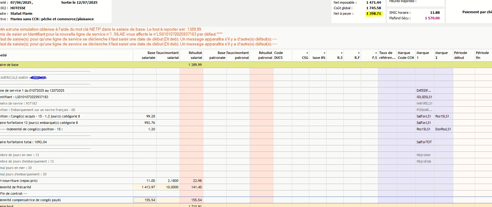 Avant j’utilisai le fonction NETP ; mais depuis le mois de 07/2025 j’ai le bon montant sur des paies sans départ le mois et un montant erroné sur les solde de tout comptes.