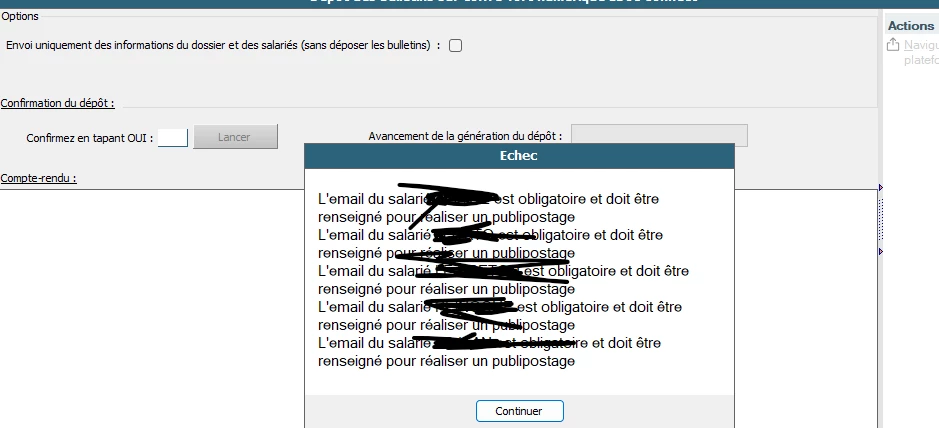 Donc, je n’ai pas renseigné les adresses mails des salariés.