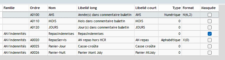Ensuite l’ordre A010/A020/A030 etc ceci vous permettant de faire évoluer votre paramétrage dans le futur et d’insérer d’autres rubriques en cas de besoin sans tout modifier