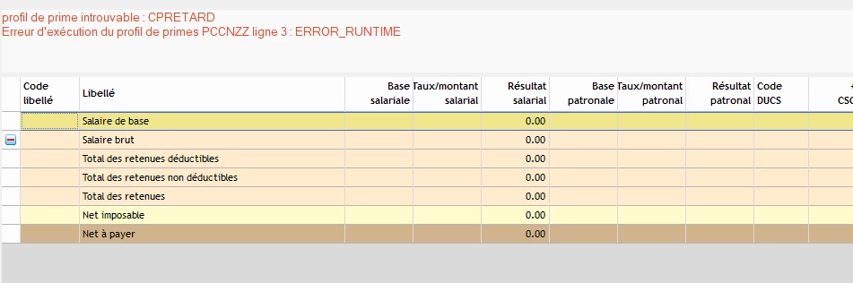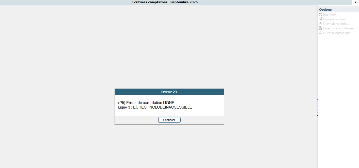 Lors de la tentative de génération des écritures comptables, un message d’erreur apparaît :