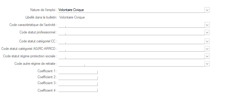J’aimerai savoir comment remplir la partie ci-dessous -définition de l’emploi - d’un volontaire civique svp, ainsi que le code cpn ducs. En vous remerciant.