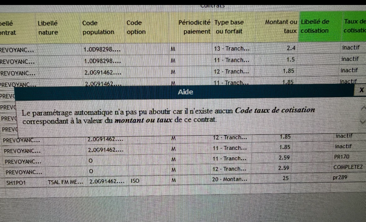Je viens de paramétrer une cotisation de mutuelle. Je pense avoir tout fait (contrat complémentaire, code rubrique dans organisme, taux renseigné) mais la cotisation ne sort pas sur le bulletin alors que j’ai dit dans la fiche salarié qu’il était adhérent. et voici le message que j’ai dans la fiche de paramétrage sur la ligne de la mutuelle.