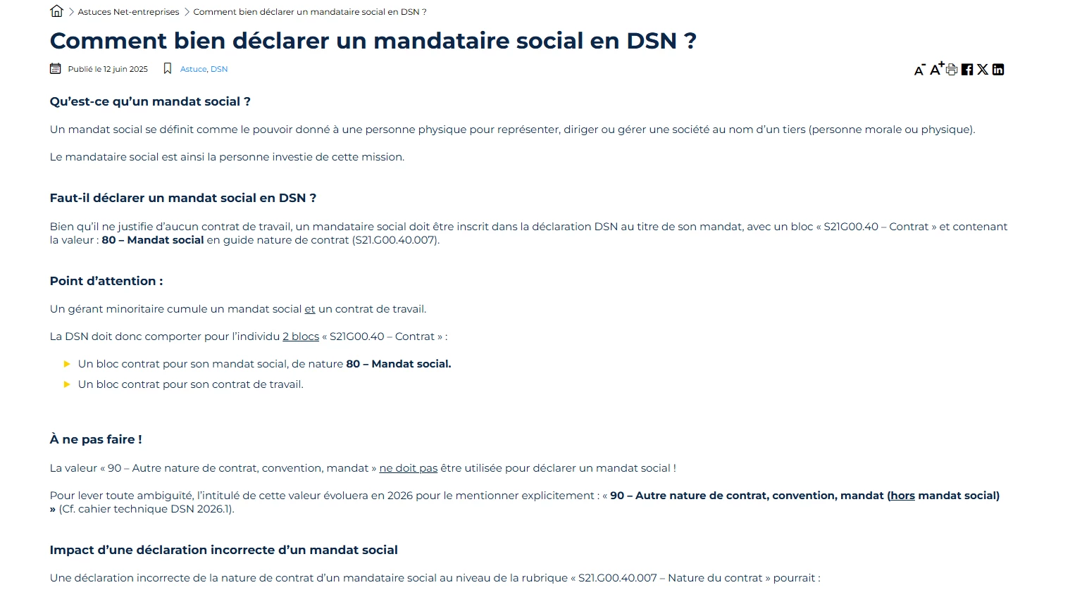 “Mandataires sociaux déclarés avec la mauvaise nature de contrat (90 au lieu de 80)”.