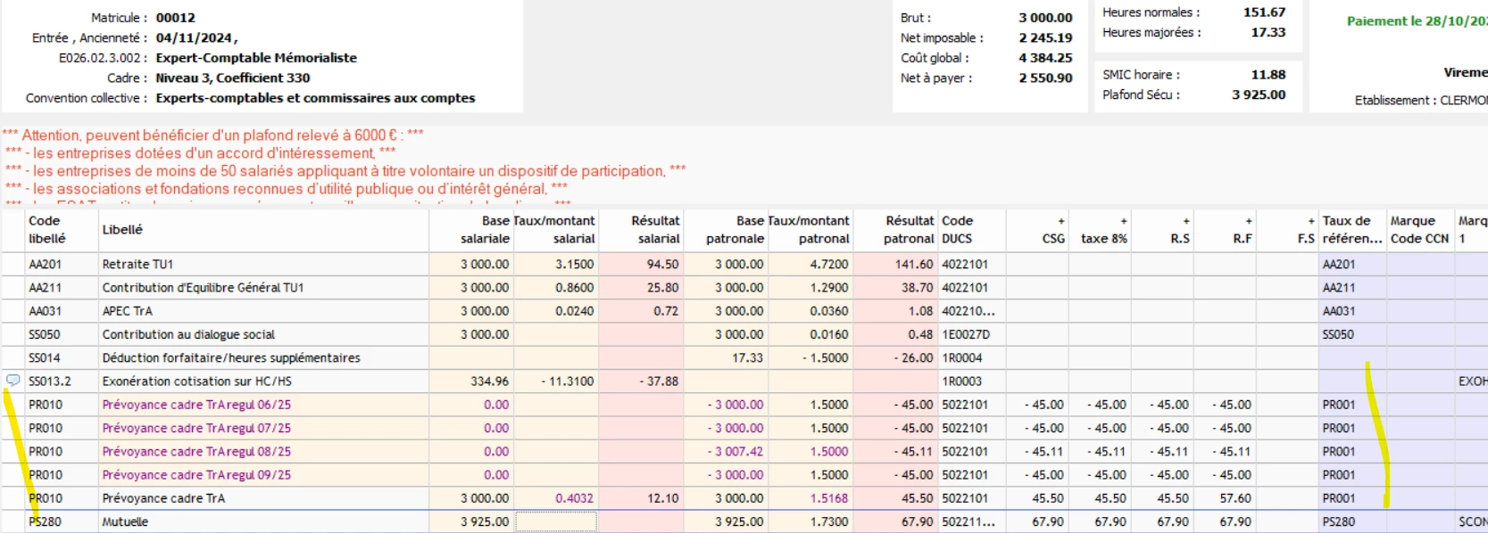 mais sur un salarie, le code cotisation choisi PR010 ne remonte pas comme il faut sur le bulletin du mois d'octobre.