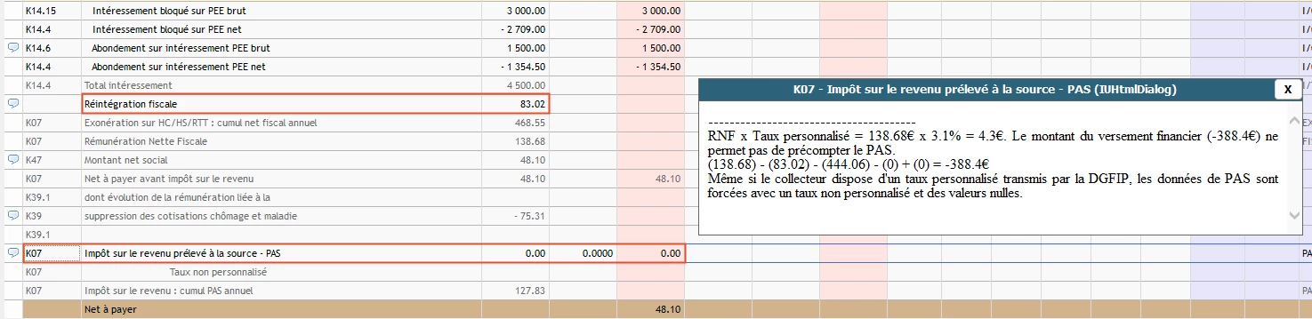 Lorsque je crée ma ligne d’abondement PEE sur le bulletin, le PAS se met à zéro alors que le taux est normalement à 1.3%. Or le client doit payer son PAS sur son salaire hors PEE.