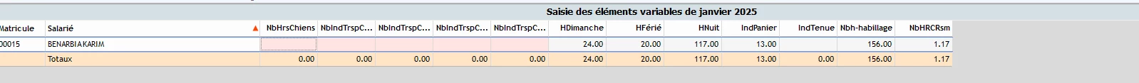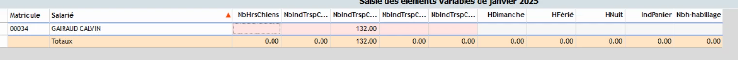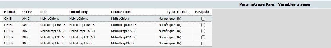 Si vous souhaitez modifier les titres des colonnes, il convient de se rendre dans le menu Paramétrage | Saisie des éléments variables.