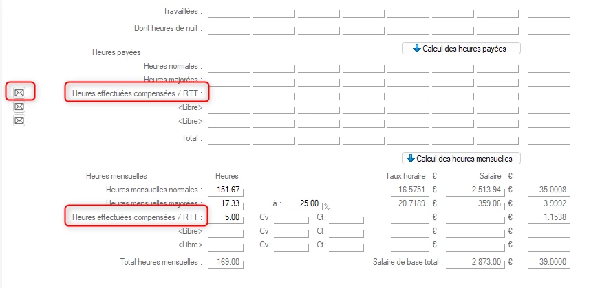 le salarié fait 39 heures, payés 38 heures 1 heure dans un compteur RTT comment faites vous,