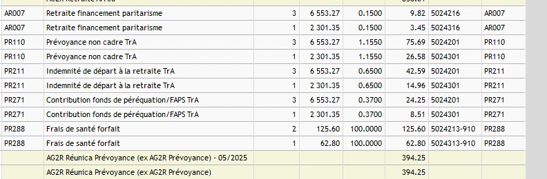 Je supprimerai aussi le PR271 dans la colonne taux de cotisations