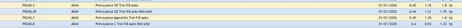 Je vois mes taux de prévoyance a jour pour 2026 dans historique, avec une horloge devant mais ils ne remontes pas dans mes BS, auriez vous une idée?