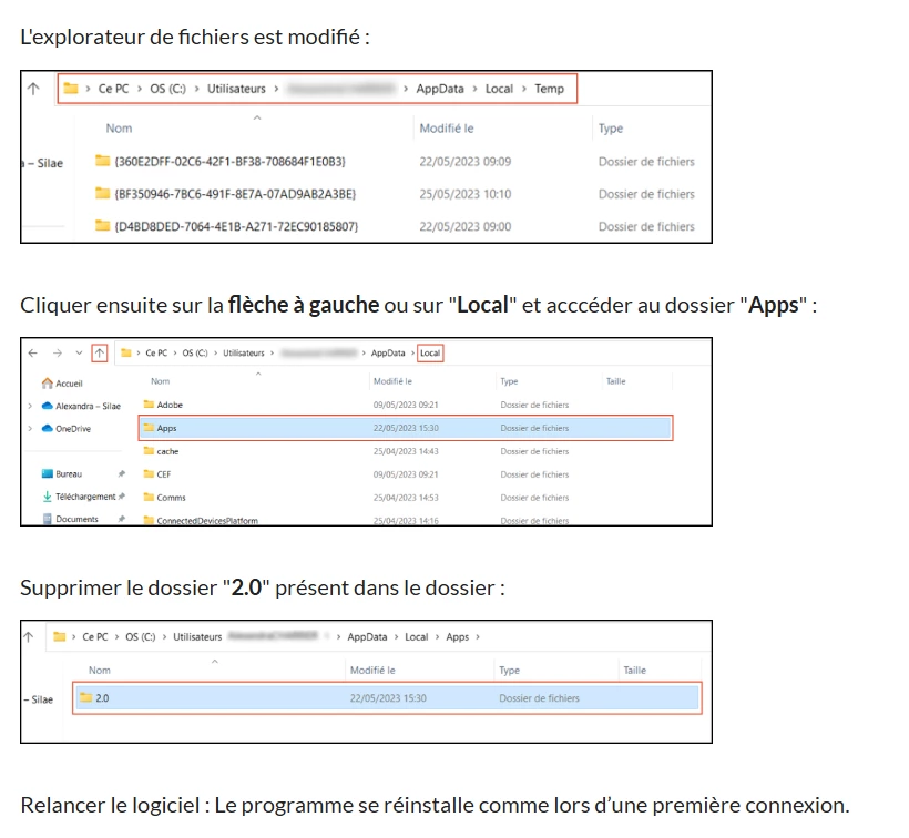 Bonjour depuis le 05/02/2026 plusieurs clients n’arrivent pas à se connecter à silaé le téléchargement se lance puis rien ne se passe l’application ne se lance pas.