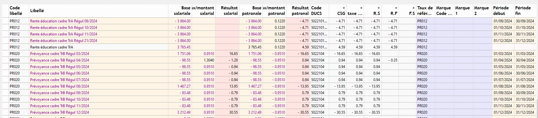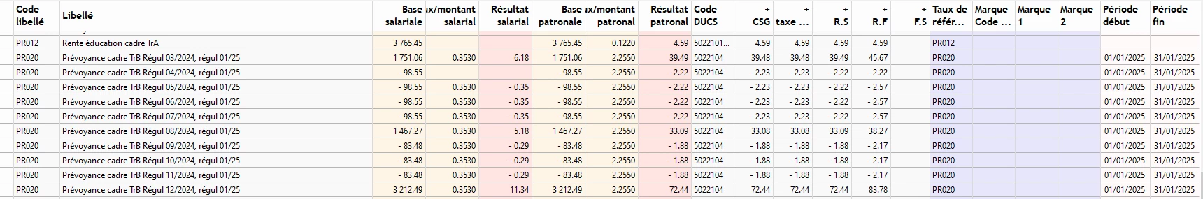 J’ai régularisé sur mon bulletin de janvier 2025, toutes les cotisations prévoyances TrA et TrB car la répartition salariale/patronale appliquée étaient pas la bonnes.