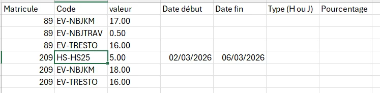 Nous réalisons un import d’éléments variables, absences et heures chaque mois, ce mois le code HS-HS25 ne fonctionne pas.