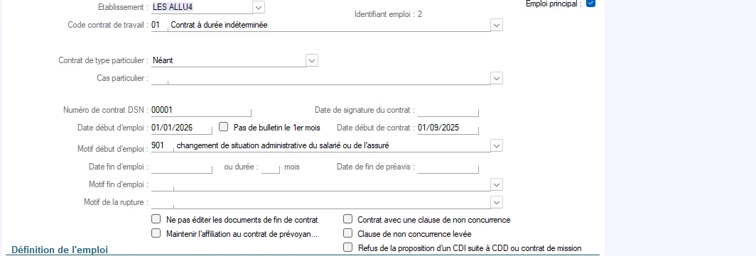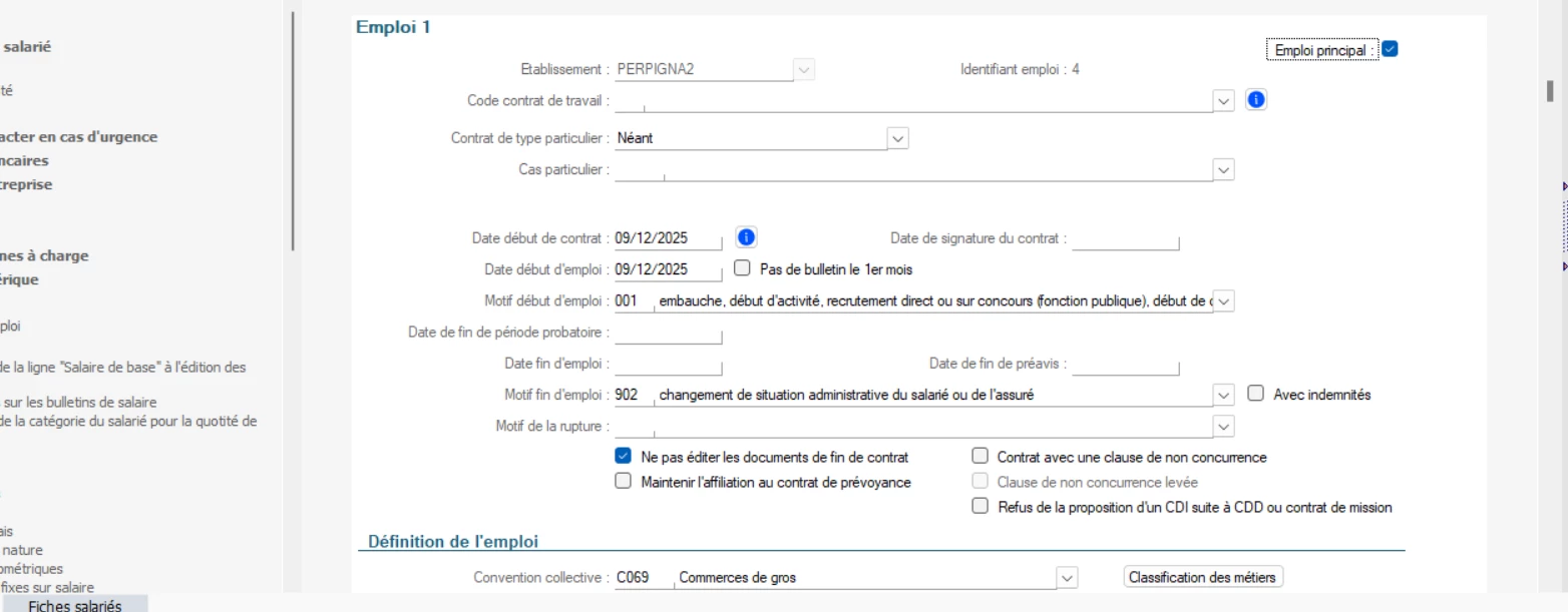 Nous avons un blocage lorsque nous souhaitons ajouter un nouvel emploi pour un salarié.