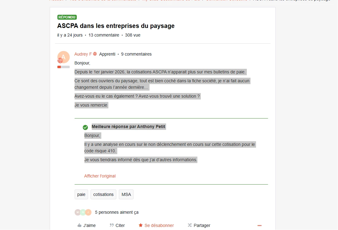 Je n’ai plus les cotisations AFNCA ANEFA PROVEA et ASCPA depuis les paies de 02/2026.