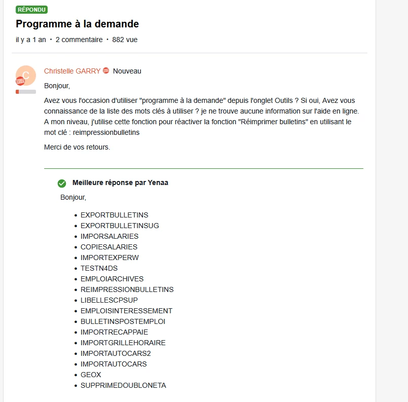 Je me demandais s’il existait d’autres programmes à la demande, hormis “reimpressionbulletins”