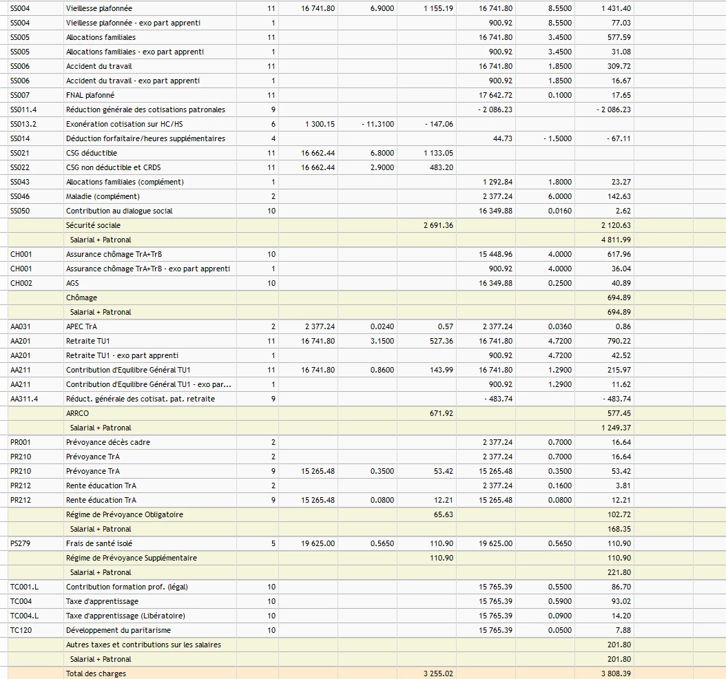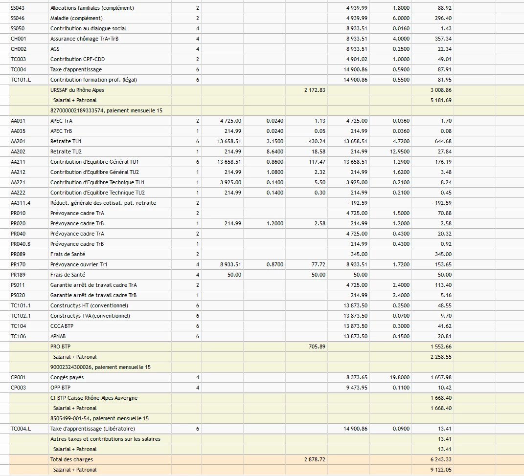 Exemple: Récap de paie détail des cotisations pour un dossier multi établissement