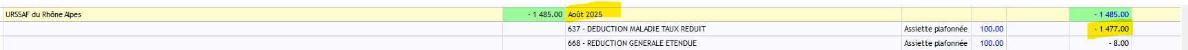 Lors du calcul de la DSN de 09/2025, la ligne du complément maladie apparait en régul de DSN de 08/2025 :