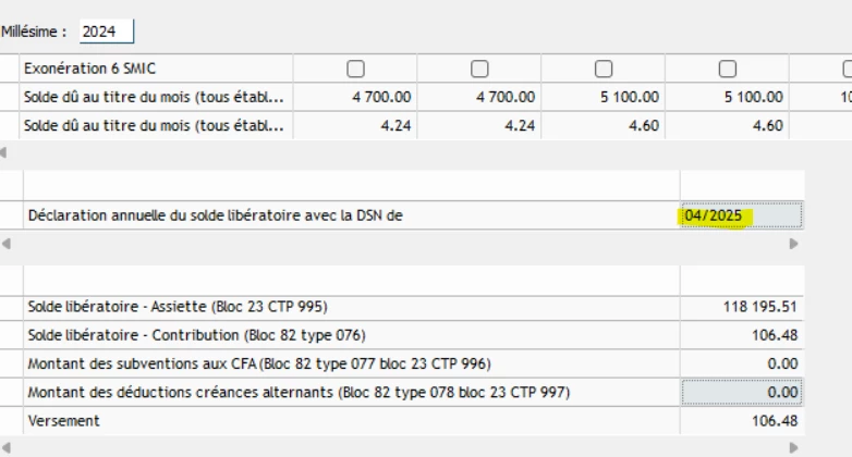 Je viens de me rendre compte (grâce au bilan comptable...) que le solde libératoire de la TA n’a pas été déclaré/payé en avril 2025. Je pensais que je pourrai la faire remonter facilement sur la dsn de mars 2026 mais à priori on ne peut pas modifier la date de déclaration annuelle :