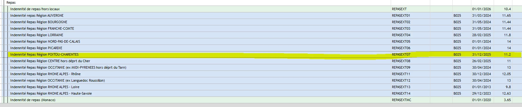 Le repas ext de mon dossier est au taux de 11.20