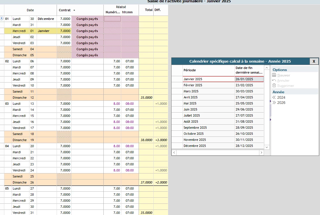 comme tous les ans j’ai un problème lors du calcul des heures supplémentaires qui est fait d’après la saisie de l’activité journalière.