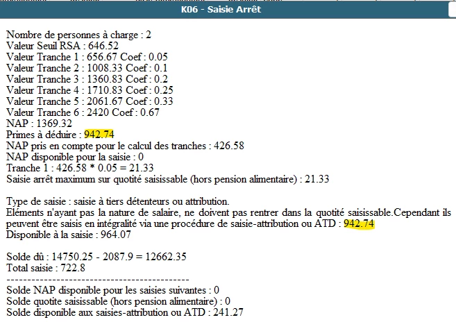 Lorsque je regarde la bulle de Silae de la saisie sur le bulletin de la sortie, on dirait que l’indemnité de RC est prise en compte dans le NAP saisissable or il me semble que lors d’une saisie sur salaire celle-ci n’est pas saisissable à contrario d’une saisie à tiers détenteur.