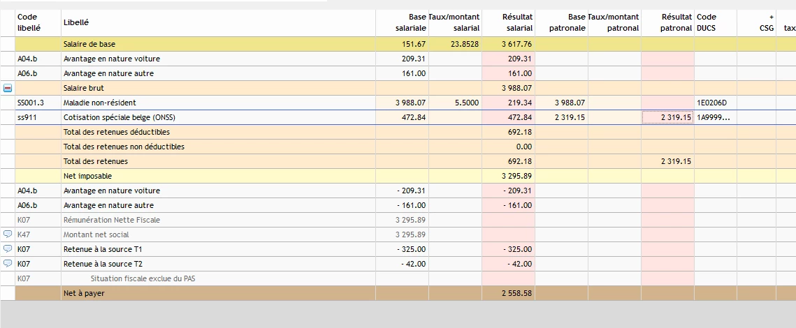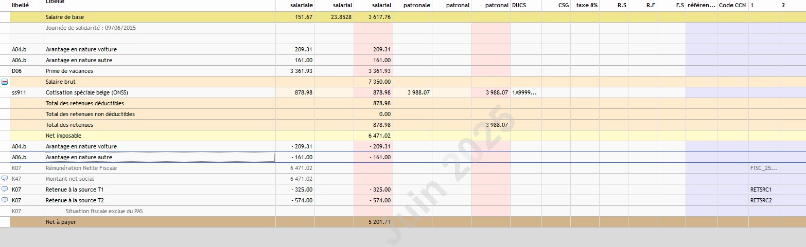 je ne parviens à identifier si la paie de ma collaboratrice est correcte :