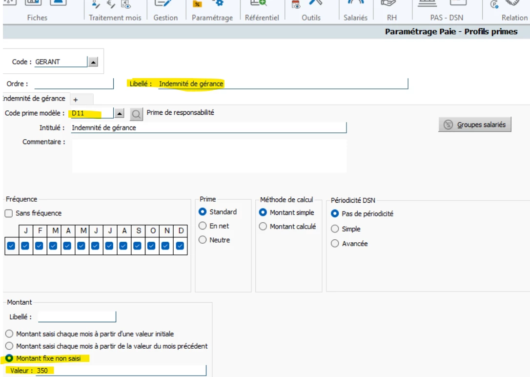 Pour le paramétrage il faut donc faire celui d’un salarié classique, le mandataire apparaitra comme les autres salariés dans le CTP 100 RG CAS GENERAL non pas 863 RG MANDATIRES SOCIAUX
