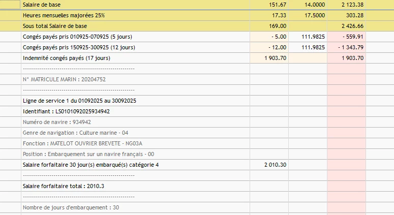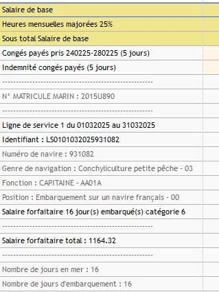 Cependant je ne fais pas cella, sur un mois à 22 jours si absence d’une semaine je passe 17 d’embarquements et les CP dans le planning Activité. (Le client fait acquérir les CP des marins comme son personnel “civil” 2.08 jr / mois.