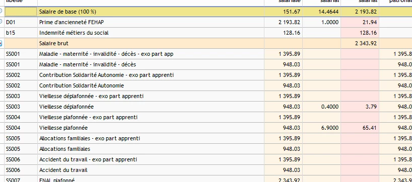 Idéalement, nous aimerions distinguer les deux rémunérations sur le bulletin (apprentissage + maintien CUI), si cela est possible.