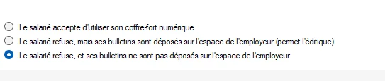 Comment faire car on ne me propose pas cette option, j’ai bien coché le salarié ne veut pas activer le coffre fort . Merci beaucoup de votre aide.