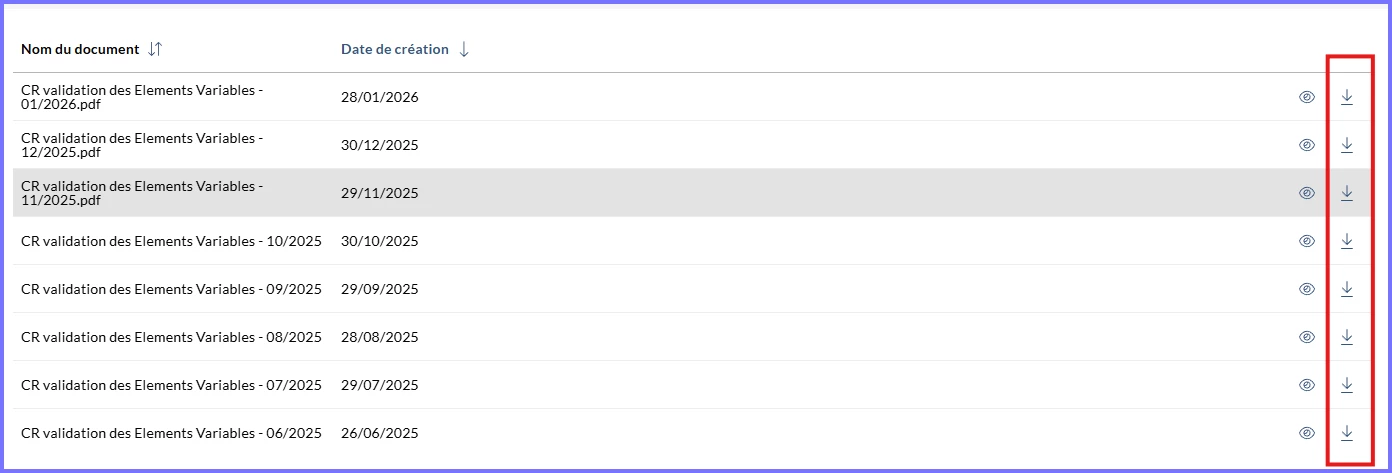 Je dois retrouver le fichier “CR des éléments variables” de novembre 2025 or dans Collaboration Documents, je n’ai plus 2025. Comment faire pour retrouver les anciennes saisies des clients?